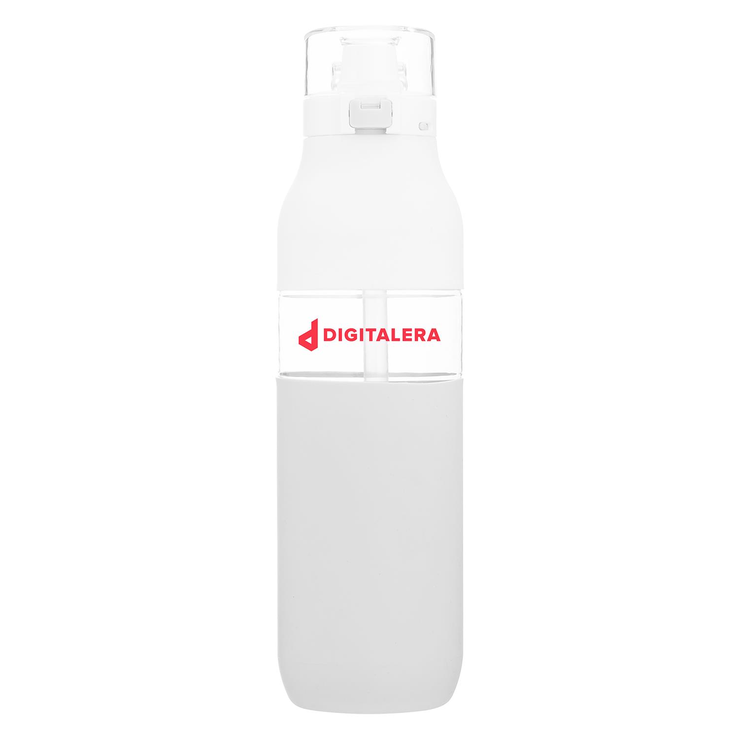 Our h2go Void 25 oz single wall Eastman Tritan copolyester bottle is BPA-free and features a threaded one-touch push-button lid. The locking mechanism prevents spills when on the go, and the built-in carrying handle makes it easy to take with you. Contact LogoBoss for more high quality custom branded drinkware and products!