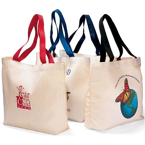 Fun canvas book bag - terrific for libraries, schools and trade shows. Match your custom imprint with a touch of contrasting color in the handle. The ultimate value in natural mid-weight cotton canvas. 21" Reinforced webbed handles. Large imprint area. We also carry 10 Ounce, 12 ounce and 14 ounce Made in the USA tote bags for additional cost - please inquire at sales@Logobossmarketing.com. 1-DAY RUSH PRODUCTION AVAILABLE!