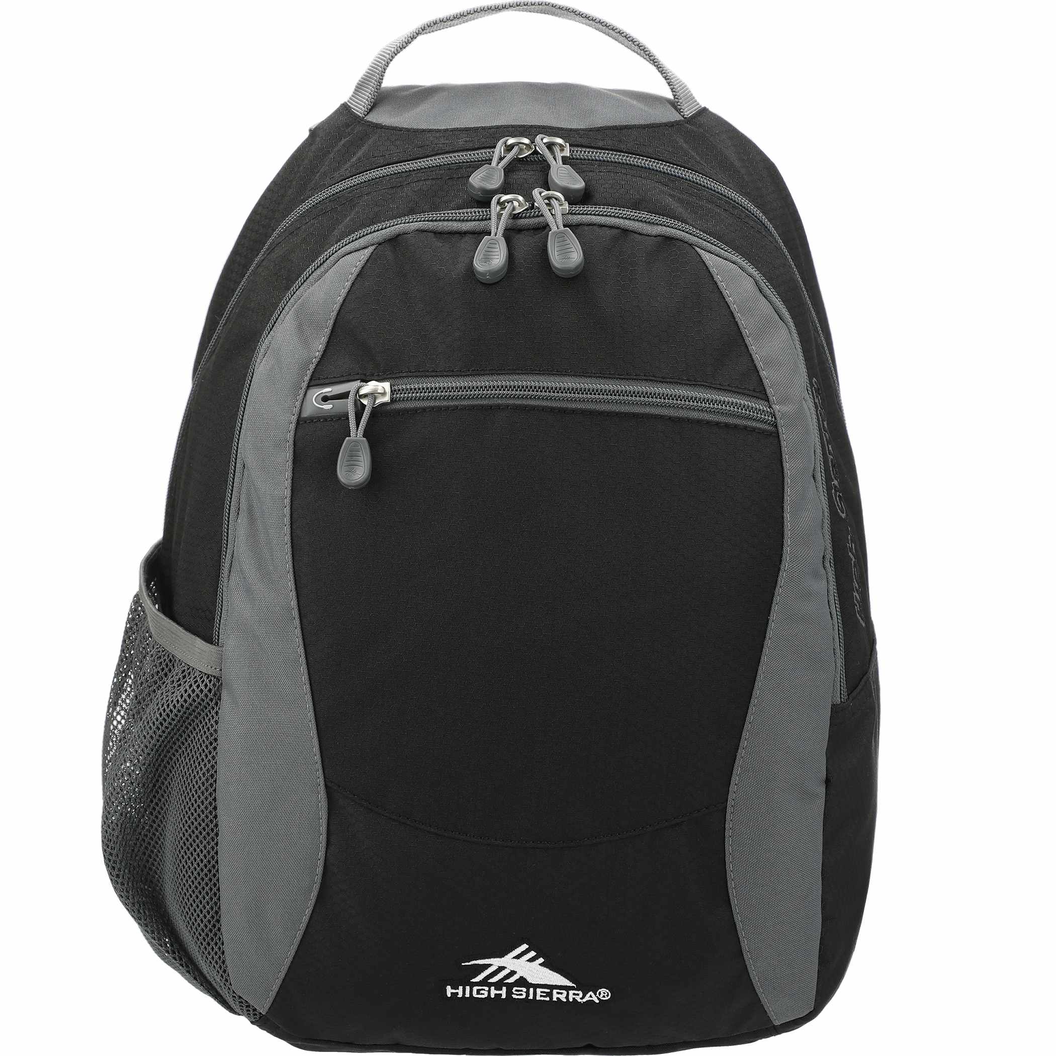 Need a reliable backpack for school or the commute? The High Sierra® Curve Backpack custom branded with your logo features a large front load main compartment and an organizer compartment with pen pockets. A front zippered accessory pocket includes a headphone port. Large gusseted side mesh beverage pockets. There are shaped padded shoulder straps with a cell phone/media pocket, a padded back panel and a heavy duty webbing grab handle. Signature High Sierra hardware. Includes lifetime warranty. Contact LogoBoss for more custom branded products!