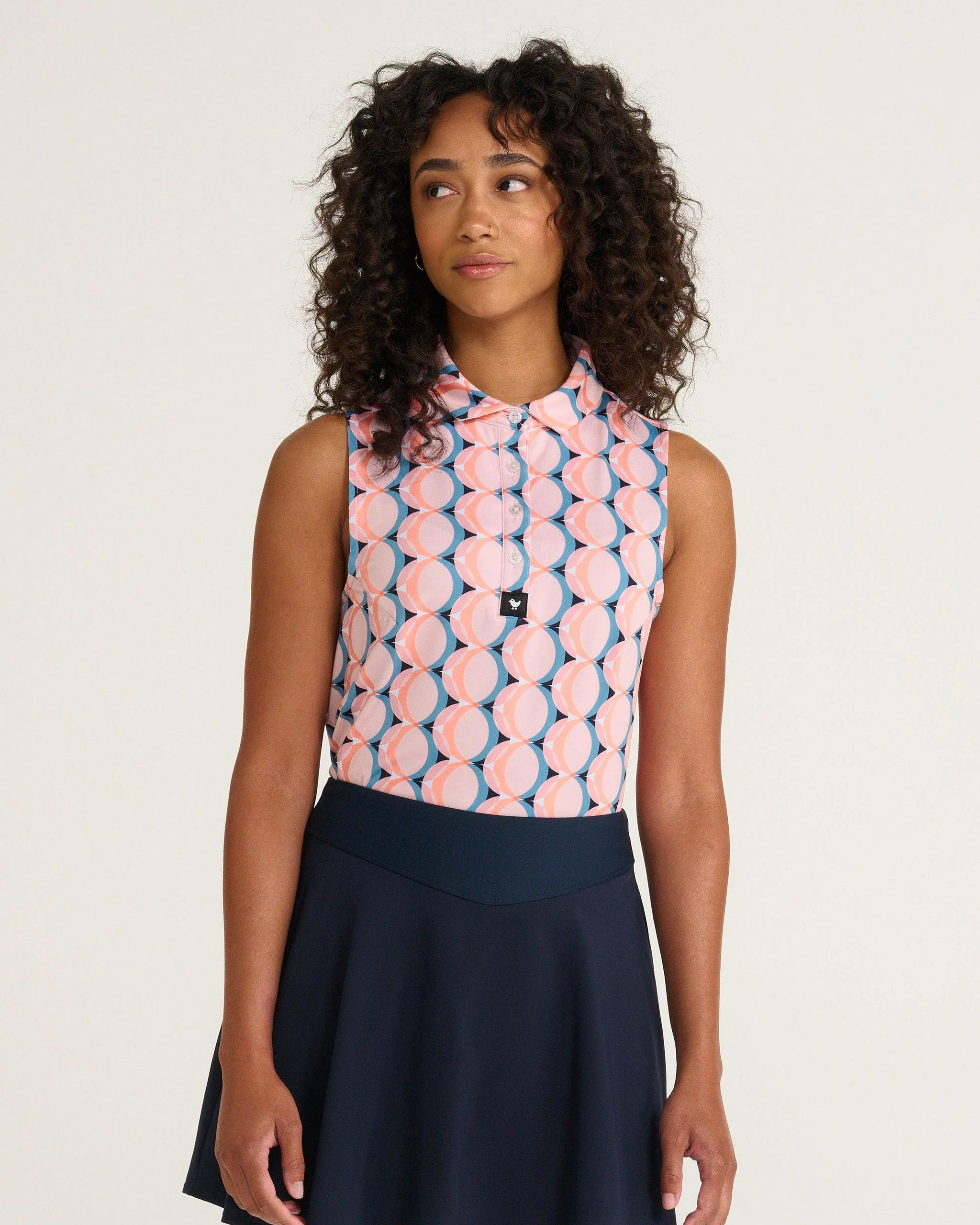 The Custom Women's Sleeveless Performance Polo is Perfect for fall and ready to ball, Kaleidoscope Szn marks the return of Golf’s Rebellion—our original sleeveless printed polo that changed the game for women’s golf. Designed to bring fearless confidence and bold personality to the course, this polo blends high-performance features with a statement-making print that refuses to be ignored. Crafted with breathable, stretchy fabric for unrestricted movement, it’s built for golfers who aim straight for the pin and look good doing it. Moisture-wicking technology keeps you cool and dry, while a tailored athletic fit flatters your form without sacrificing comfort. Whether you're competing or just vibing with your crew, Golf’s Rebellion proves women’s golf can be just as powerful, stylish, and unapologetic as the game itself.