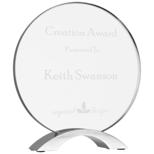 Custom Engraved Round Cosmic Acrylic with Silver Base is the ultimate way to recognize and honor outstanding achievement. The Cosmic Acrylic features a durable 3/8" thick acrylic design, securely attached to a sleek satin-finish aluminum base for a modern look. Each award is shipped with the base attached and is available in an 8.5" height size. Easily customizable with rotary or laser engraving, it’s perfect for highlighting your personalized message with precision.