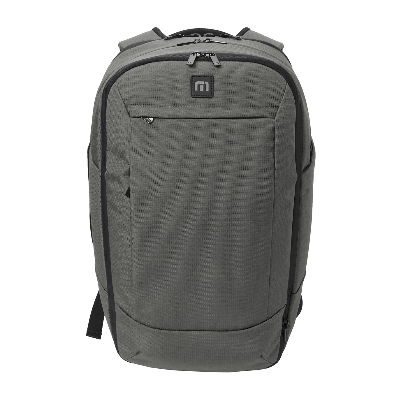Our custom imprinted Ultimate TravisMathew business bag is a backpack that can be used, well, for anything! Take on the day your way with this water-resistant backpack that's perfect for travel because it can keep extra clothes separate from your other essentials. Made from 100% poly mini ripstop with a durable water repellent (DWR) finish. Padded side handle so you can carry as a briefcase BUT has full backpack function. Tricot-lined zippered pocket for valuables with interior tech organizers with a dedicated padded laptop compartment and side water bottle sleeve. High quality metal zipper pulls and a rubber TravisMathew logo patch included. Laptop sleeve dimensions: 16"h x 12"w x 1"d; fits most 16" laptops but can be used for 15 inch as well. Has a roomy approximate space of 1,260 cubic inches.
