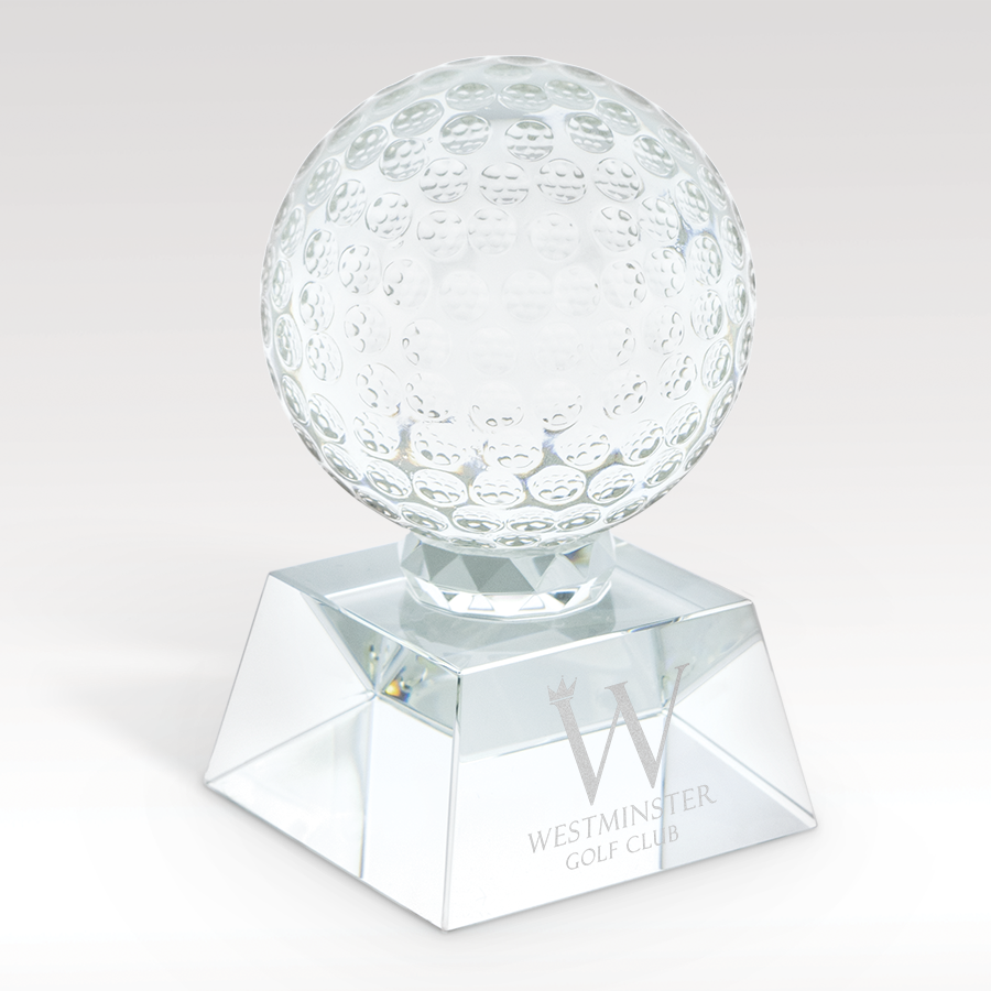 This Custom Crystal Golf Ball Award is the perfect choice for a corporate golf outing or any competitive golf tournament! Its compact design fits easily in any space, while its sleek, refined look captures the essence of a true golf champion. A great addition to any golf giveaway. Despite its impressive presence, the custom award features a compact footprint—measuring 3" W x 4.75" H x 3" D—making it ideal for display even in limited spaces. Celebrate excellence with a trophy that blends sophistication and practicality.