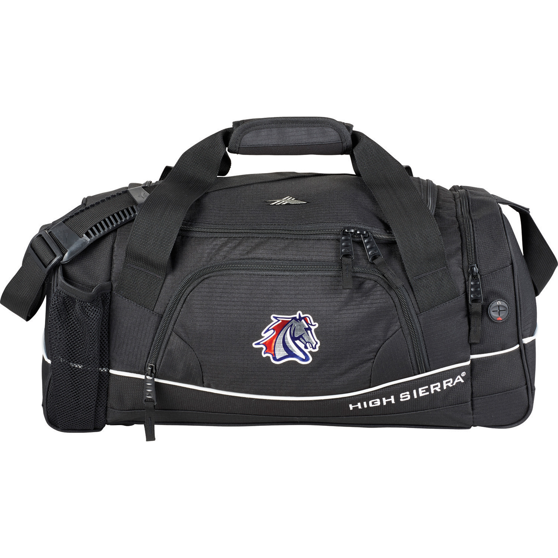 Our High Sierra Bubba Duffel is built to last. This large, roomy duffel bag features a main compartment with U-shaped zippered opening, and a convenient, zippered end pocket with room for a smartphone and a port for a charging cable so your device stays where it belongs and charges at the same time. This duffel comes with a mesh water bottle pocket. An excellent bag for sports teams or a spontaneous day trip. Includes a lifetime warranty.
