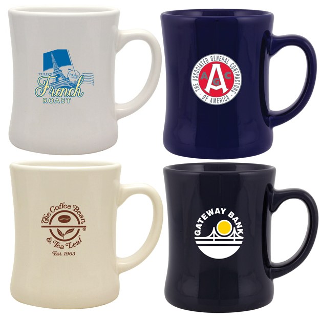 Luna Custom 14 oz Diner Mugs in a unique hour glass design. Popular in diners, this custom mug gives a retro feel.